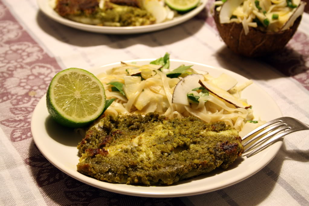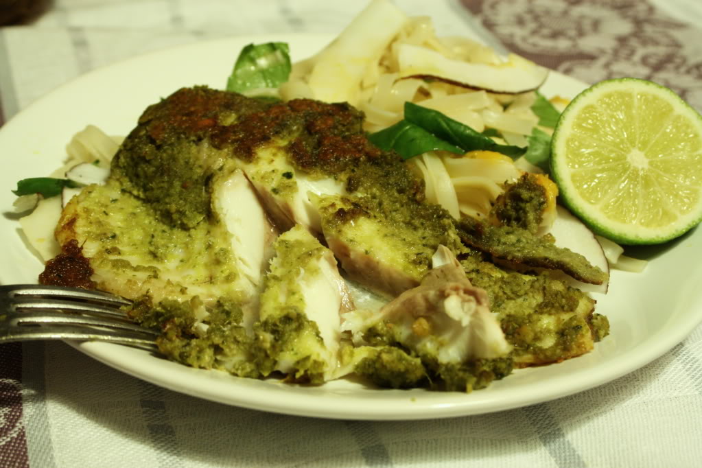 Dorada in pesto de caju cu salata thailandeza cu cocos si fructul pasiunii