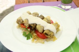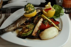 In primavara am mai mancat la ei un pastrav umplut cu prune si nuci cu garnitura de legume la gratar si o rulada de curcan. Ambele foarte bune.