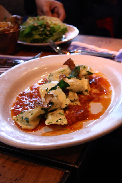Am mai avut pe masa caracatita pane, cartofi prajiti cu usturoi, hamburger, tagliolini cu carne de iepure si o portie de ravioli cu ciuperci. Toate bune, bine gatite dar nimic care sa ne impresioneze pana la lacrimi. In concluzie, a doua oara nu cred ca m-as mai duce si as cauta alte restaurante mai putin cunoscute, in care sa descopar ceva surprinzator cum a fost cel despre care va voi povesti imediat.