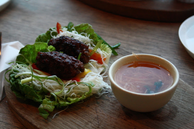 Noi am mancat un guacamole foarte foarte bun, intr-o portie destul de mare (aprox. 5 lire) si niste chiftelute vietnameze cu niste legume murate excelente (tot in jur de 5 lire).