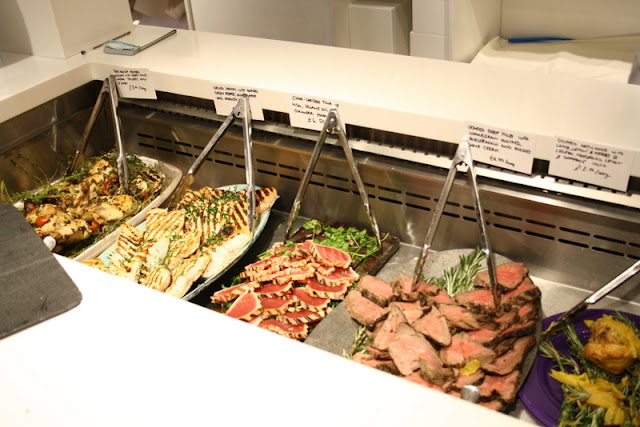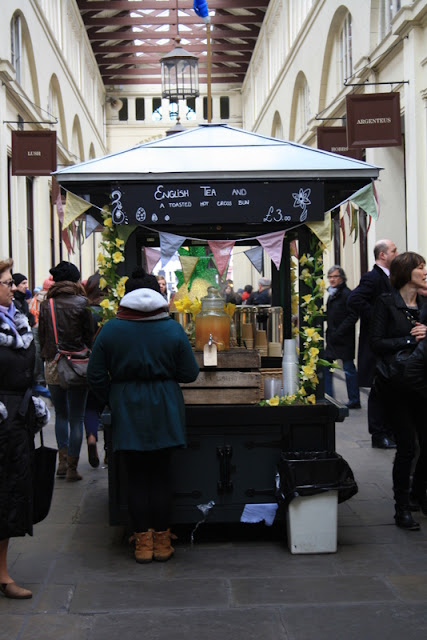 Incaperea e destul de micuta, dar are o masa de aproximativ 6 persoane unde poti manca. Paralizati de frig, am ales sa ne incalzim putin cu un ceai si sa mancam acolo. Am ales o combinatie de 4 salate care a costat in jur de 14 lire, un ceai de menta proaspata si doua prajiturele: un cupcake cu zmeura si crema de lamaie si un financier cu fructe (aprox 3-4 lire/bucata).