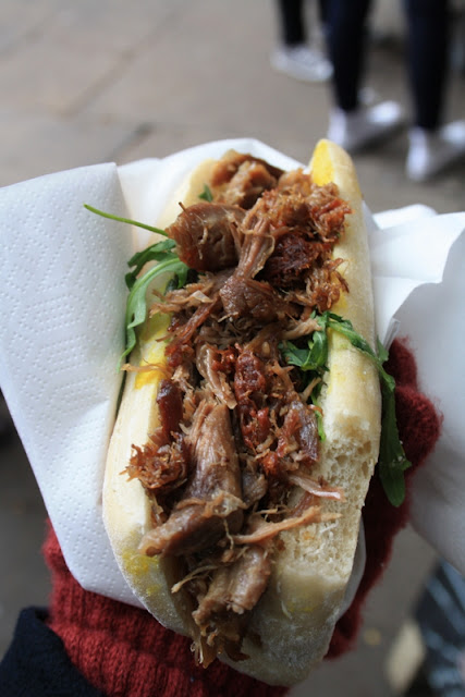 Dupa ce ne-am invartit pe la toate tarabele cu mancare si am fost descurajati de cozile foarte mari, ne-am oprit la un stand cu sandvisuri cu carne de rata care a fost bunut, insa putin cam uscat. Ne-am mai luat si o felie de cheesecake de casa, care a fost ok dar nu fantastic.