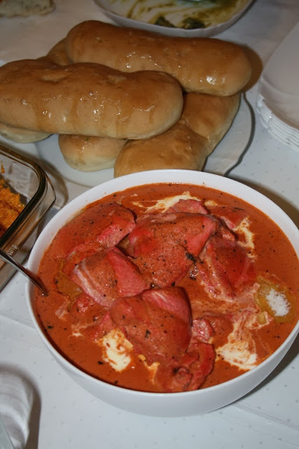 Cel mai tare mi-a placut daal-ul, care a fost cu totul diferit de cel gatit de mine. Lintea a stat la fiert cam doua ore pana s-a dezintegrat, iar la final, mixul de condimente praijte i-a dat o aroma deosebita. M-a surprins desertul de morcovi fierti in lapte, care, desi a fiert foarte mult, a fost simplu de gatit, foarte gustos si light (fara crema sau blat). Insa revelatia serii a fost sosul de menta si coriandru, care a insotit pakoras de pui. Mie nu-mi place deloc coriandrul proaspat, insa in sosul asta si combinat cu bucatelele de pui pane nu numai ca nu m-a dezgustat (ca de obicei), ci mi-a placut foarte mult.