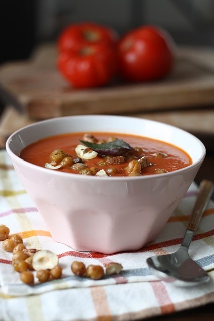 Marius a spus ca e cea mai buna supa de rosii pe care a mancat-o vreodata, iar la fel pot spune si eu. A fost delicioasa si foarte usor de facut. Crutoanele de naut le inlocuiesc foarte bine pe cele din paine si sunt mult mai sanatoase. Le puteti manca chiar si ca gustare.