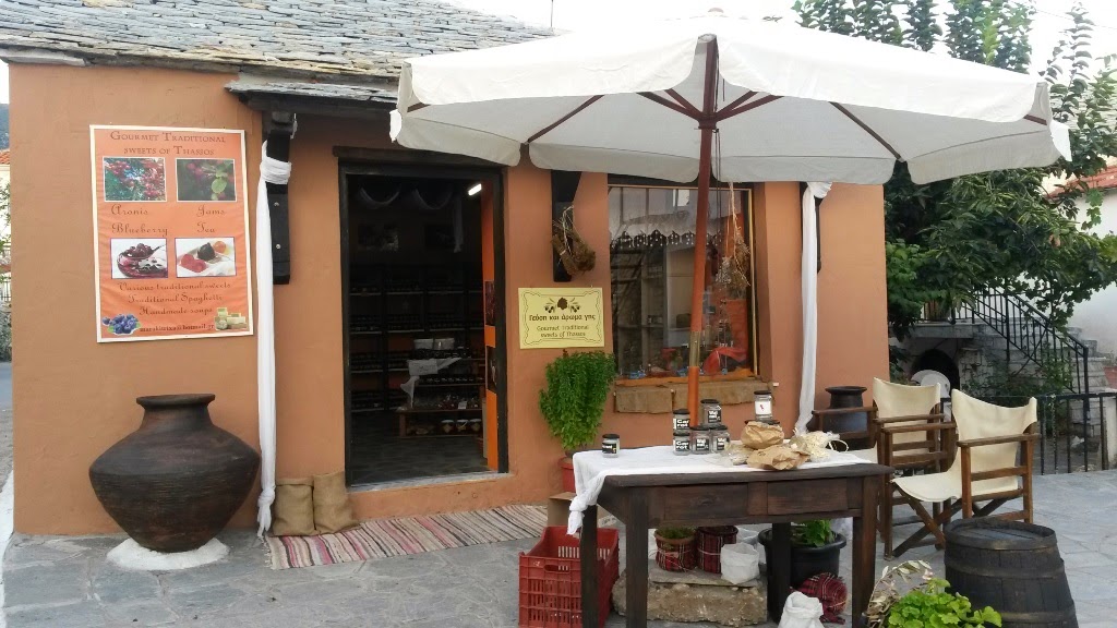 Gourmet Traditional Sweets of Thassos – un magazine dragut pe care il gasiti intr-o casa in drumul spre taverna Iatrou. Au paste artizanale, sapun de casa si multe dulceturi traditionale, facute si cu miere (dar mai mult zahar decat miere 🙂 ). Dulceturile au tot felul de combinatii interesante, cum ar fi rodii cu cirese amare, zmeura cu coacaze, morcov sau bergamota si se pot gusta. Eu nu sunt fanul dulceturilor, dar astea mi-au placut.