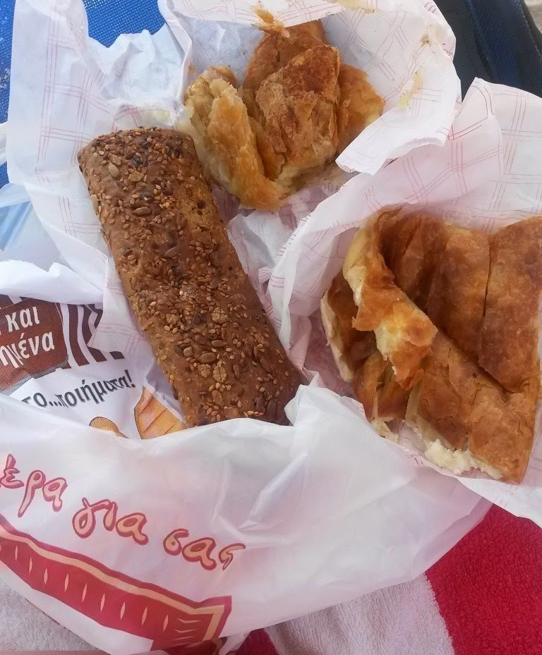 Taverna Iatrou – pentru ca acum doi ani am mancat la o taverna care nu prea ne-a impresionat, de data asta am ales o alta, din cele 4-5 din Theologos :). Am mancat o portie de ardei copti umpluti cu feta (foarte buni si picanti), o mancare de bob care era putin cam sarata dar mi s-a parut delicioasa (nu mai mancasem bob pana atunci, dar m-a convins sa il incerc si acasa) si porc la rotisor (una din specialitatile tavernei). Portia de porc a fost mult prea mare chiar si pentru doua persoane si nu am reusit sa o terminam. Carnea a fost ok dar nu mi s-a parut altfel decat o carne de porc gatita la cuptor. Am luat si o portie de iaurt grecesc cu miere si nuci, mult mai echilibrat si foarte, foarte bun. Desertul din partea casei (baclava greceasca, din gris) mi-a placut si el foarte tare. Terasa are o priveliste frumoasa, dar ospatarii au fost cam incruntati. In concluzie a fost ok, cred ca as mai reveni, insa as comanda cu siguranta mai putina mancare. Pretul pentru o masa de 2 persoane (cu apa adusa de ei pe post de coperto) a fost 28 euro.