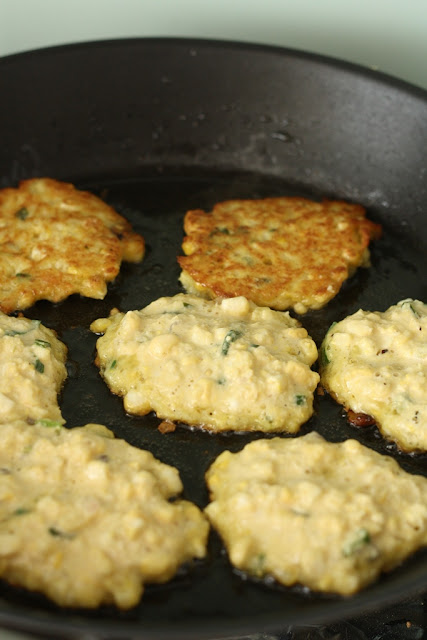 Se incalzeste o tigaie in care se pun 3-4 linguri de ulei de masline si se aseaza cate doua linguri de compozitie pentru fiecare chifteluta. Se prajesc cate 3 minute pe fiecare parte si apoi se aseaza pe servete din hartie, pentru a se absorbi uleiul in exces.