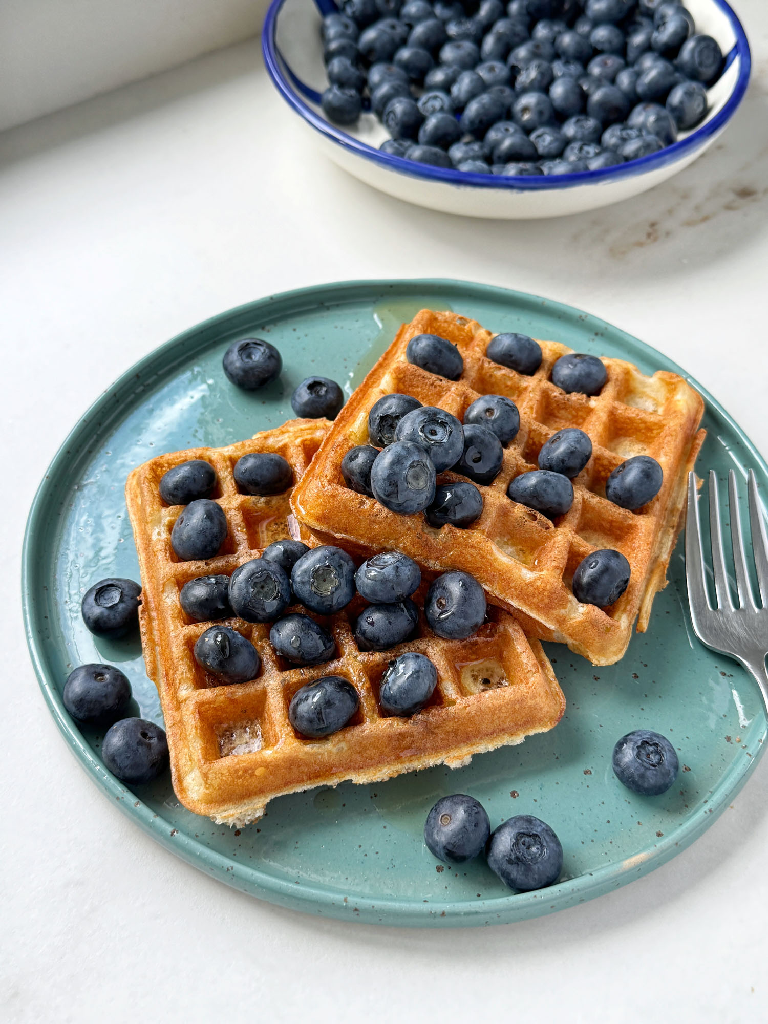 Asta e noua mea rețetă preferată de waffles, de când am descoperit-o, nu am mai făcut altă rețetă și nu ne mai săturăm de ea. Am descoperit aceste wffles cu chefir întâmplător, încercând să coc un aluat de pancakes în aparatul de waffles. Seamănă foarte bine cu waffles cu maia, sunt ușor crocante la suprafață și aerate și fragede la interior.