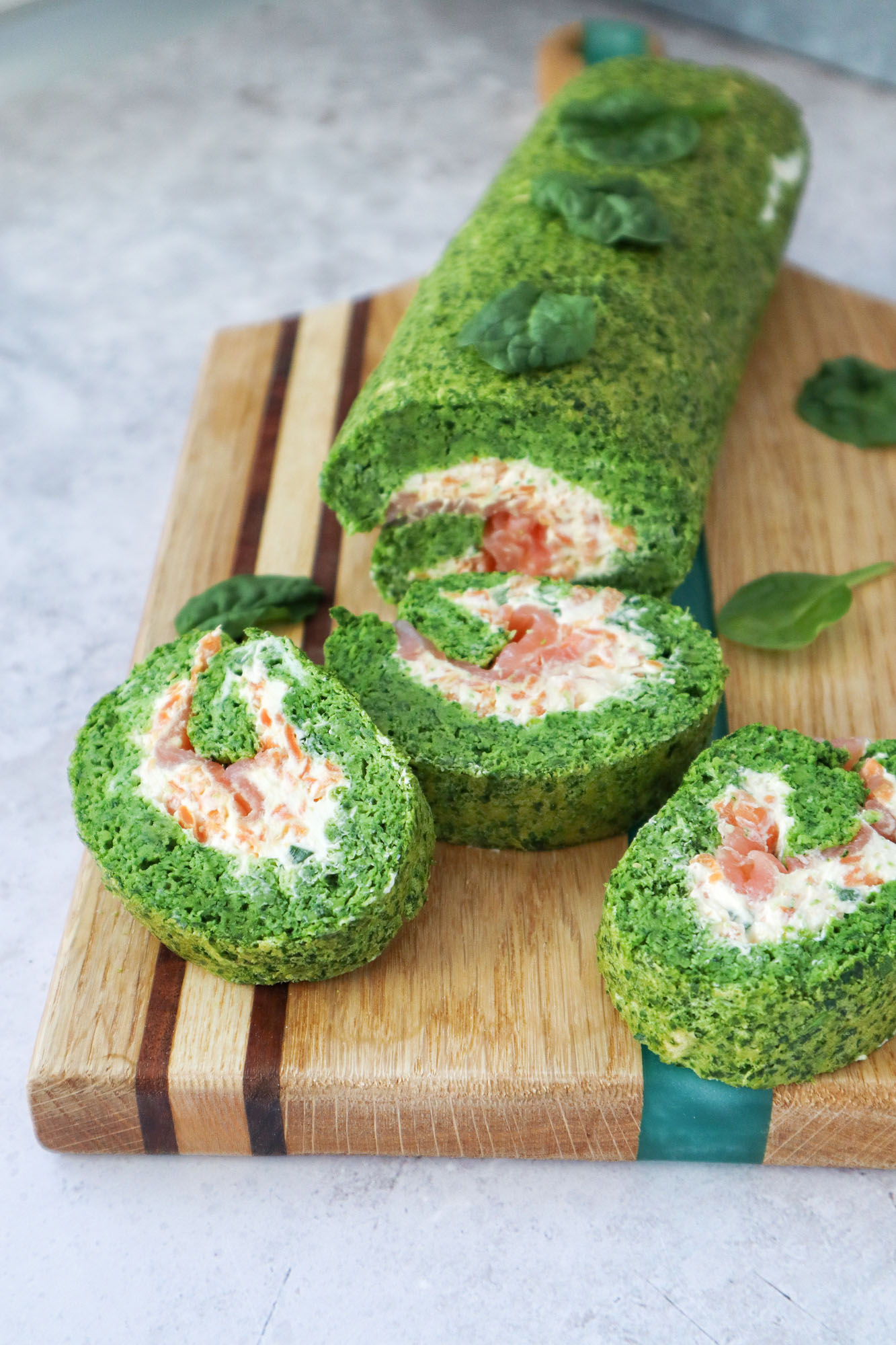 Am făcut această ruladă de spanac cu cremă de brânză și somon afumat acum câțiva ani ca aperitiv pentru masa de Paște și în fiecare an primesc poze de la oamenii din comunitatea mea cu ea. Așa că am decis că merită să rămână și pe blog. Umplutura cu somon afumat mi se pare foarte potrivită, însă dacă doriți, puteți să folosiți și ricotta, cașcaval, șuncă,ciuperci, roșii uscate, ardei copți și diverse verdețuri.